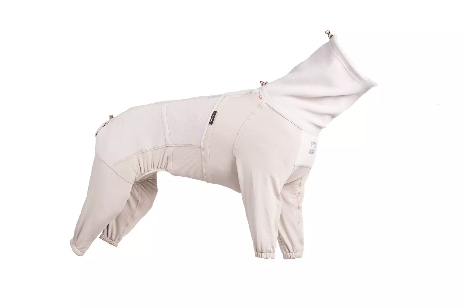 Non-stop Dogwear Trail Quest fleece overall - fleecehaalari koiralle, joka kaipaa lämpöä ja mukavuutta kylminä päivinä. Haalari peittää kaulasta nilkkoihin asti, ja Polartec®-fleece yhdistettynä ruudutettuihin paneeleihin rinnassa, vatsassa ja jaloissa säätelee lämpöä tehokkaasti.