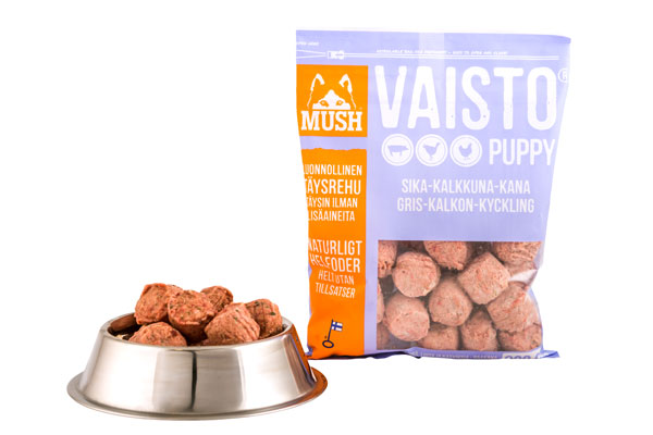 MUSH Vaisto® Sika-kalkkuna-kana PUPPY vaaleanliila on koiran täysravinto. MUSH Vaisto® PUPPY vaaleanliila on suunniteltu aktiivisille koiranpennuille jotka kasvavat vielä korkeutta. Luumäärä 10 %, maksa 5 %.