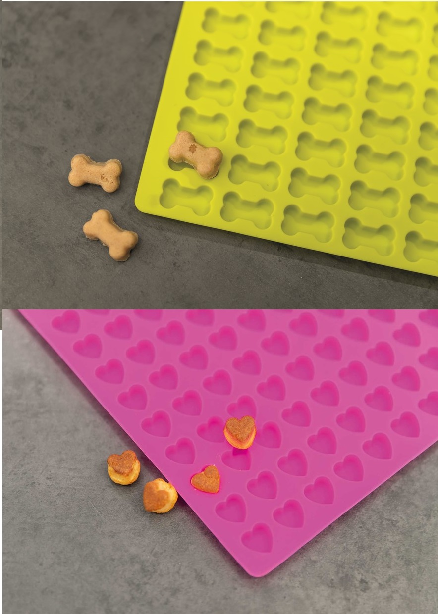 - Kestävä, silikoninen vuoka makupalojen leivontaan ja nuolumatoksi