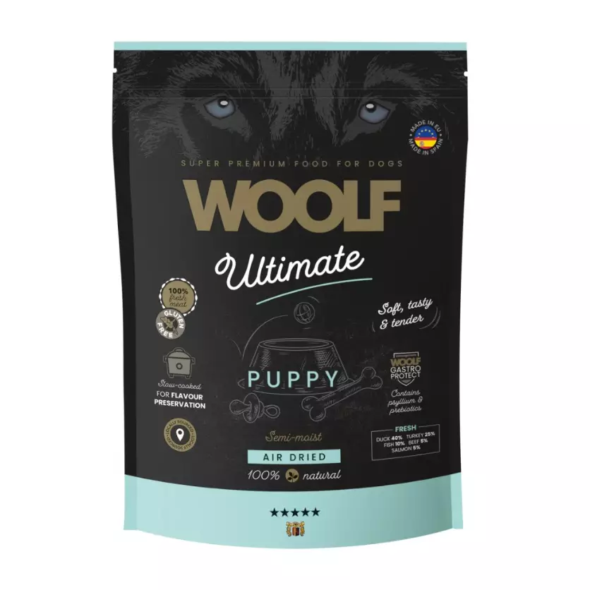 Woolf Ultimate Puppy on helposti sulava ja todella maistuva täysravinto koiranpennuille ja treeninami kaikille koirille. Woolf Ultimate Puppy -ruoka on suunniteltu erityisesti pentujen ravitsemuksellisiin tarpeisiin, tukien niiden optimaalista kehitystä. Puolikostea ruoka valmistetaan matalassa lämpötilassa hitaasti kypsentämällä, jotta ruoan ravintoarvot säilyvät ja herkullinen lihan maku korostuu.