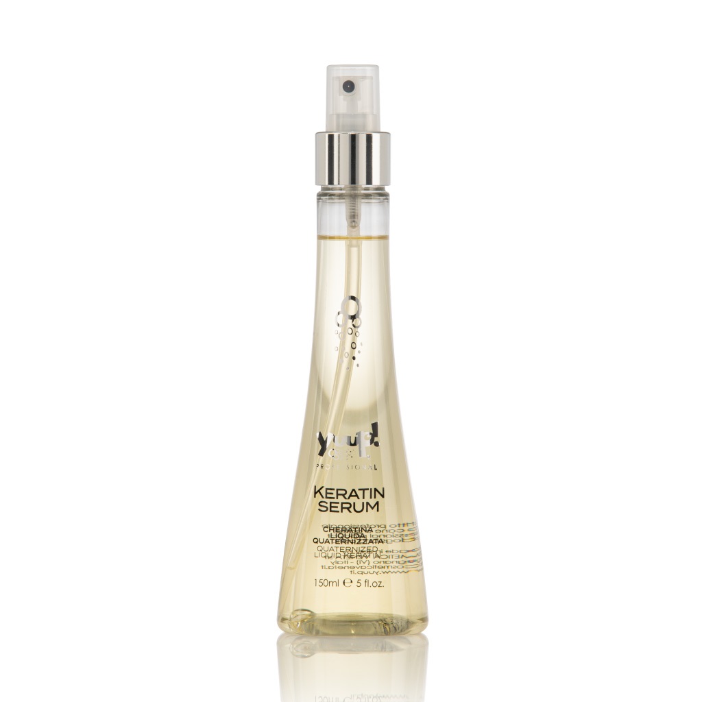 Yuup Professional -sarjan Keratin Spray turkinhoitosuihke on laadukas hoitoseerumi, joka korjaa ja vahvistaa karvan rakennetta keratiinin luonnollisten ominaisuuksien ansiosta. Keratin Spray hoitoainesuihke on parhaimmillaan kun haluat palauttaa rasittuneen ja kuluneen turkin luonnollisen kiillon ja rakenteen. Keratin Sprayn kiillottava ainesosa on luonnollinen keratiini, joka korvaa monien tuotteiden silikonin. Keratiini hoitosuihke on erinomainen vaihtoehto myös turkin viimeistelyyn näyttelyitä varten. Hoitoainesuihke on erittäin riittoisa, vain 1-2 suihkausta riittää.