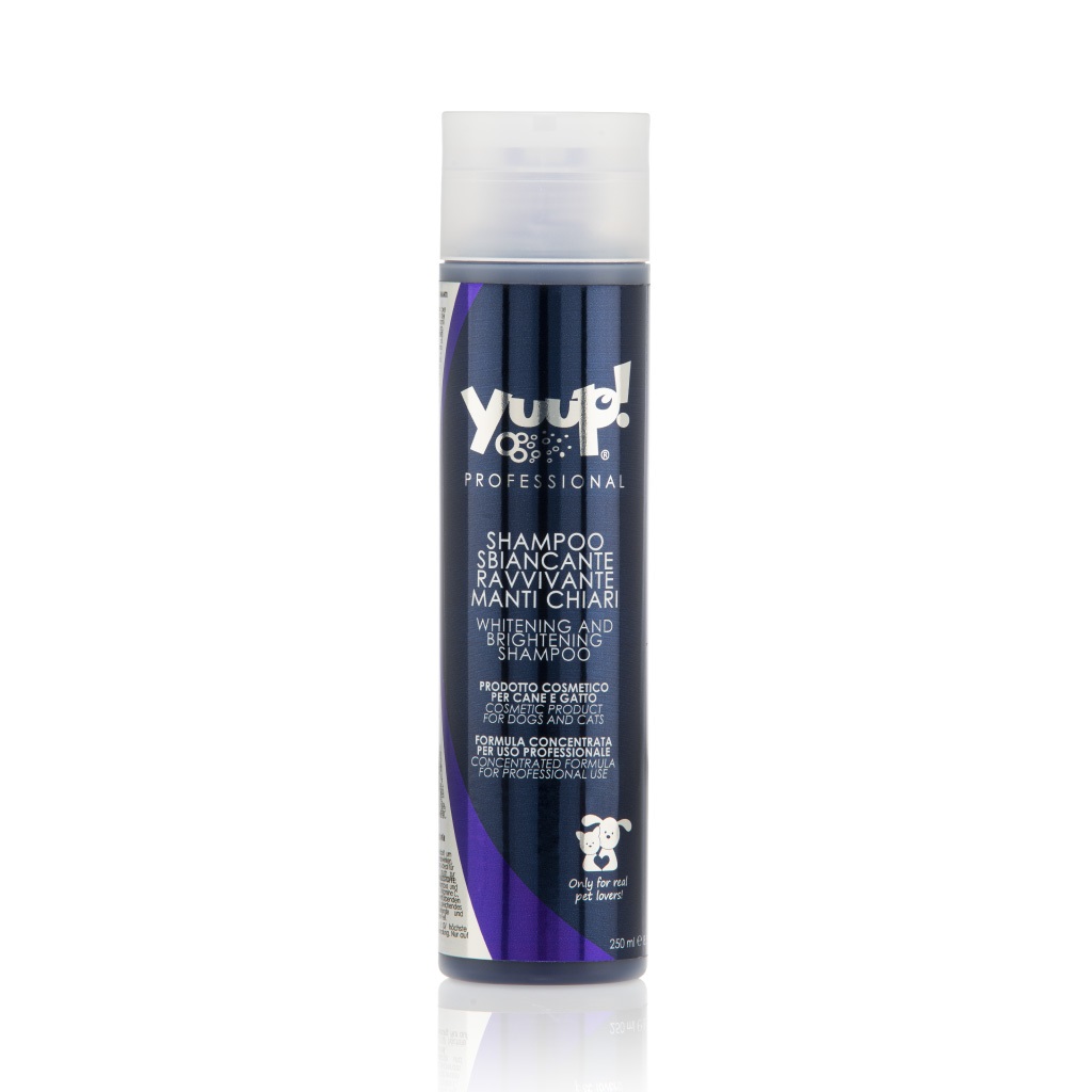 Yuup! Professional Whitening and Brightening shampoo on suunniteltu erityisesti ehkäisemään vaaleiden turkkien kellastumista.