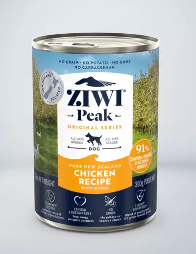 ZiwiPeak Uuden-Seelannin kana koiran märkäruokapurkki Käytä täydellisenä ja tasapainoisena ateriana, ravitsevana lisukkeena tai herkkuna. Ei sisällä viljaa, perunaa, glyserolia eikä lihan... Lue lisää