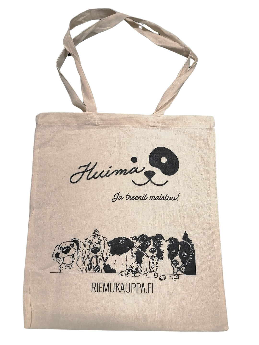 Kevyt, kestävä ja tyylikäs – Riemukaupan Huima-kangaskassi on täydellinen kumppani ostoksille.