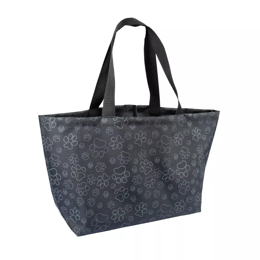 Hauskaan tassukuviolliseen tarvikekassiin voi pakata vaikka koiran omat tarvikkeet matkalle tai lisävaatteet itselle kylmiin halleihin. Tilavan treenikassin kestävä polyesterimateriaali selviää kovemmassakin käytössä, ja pohjapahvi pitää kassin ryhdikkäänä. Sisäpuolella on erillinen avotasku tärkeille pientavaroille, kuten puhelimelle tai avaimille.
