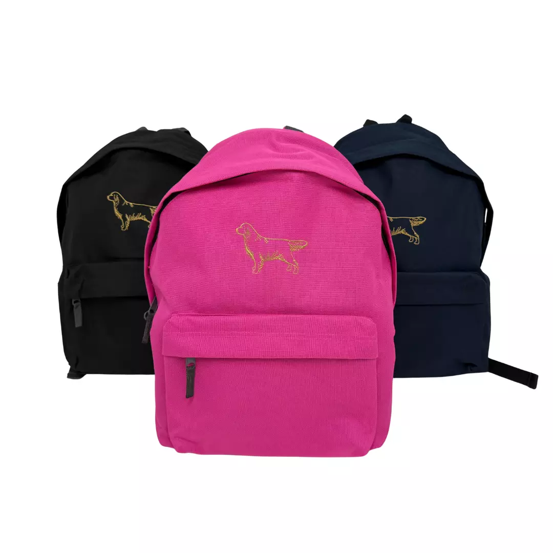 Kätevä reppu näyttelyyn, metsäretkelle, treeneihin tai ihan arkikäyttöön! Repun etuosassa kultaisennoutajan profiilikuva brodeerattuna. Väreinä pinkki, tummansininen ja musta • Materiaali:... Lue lisää