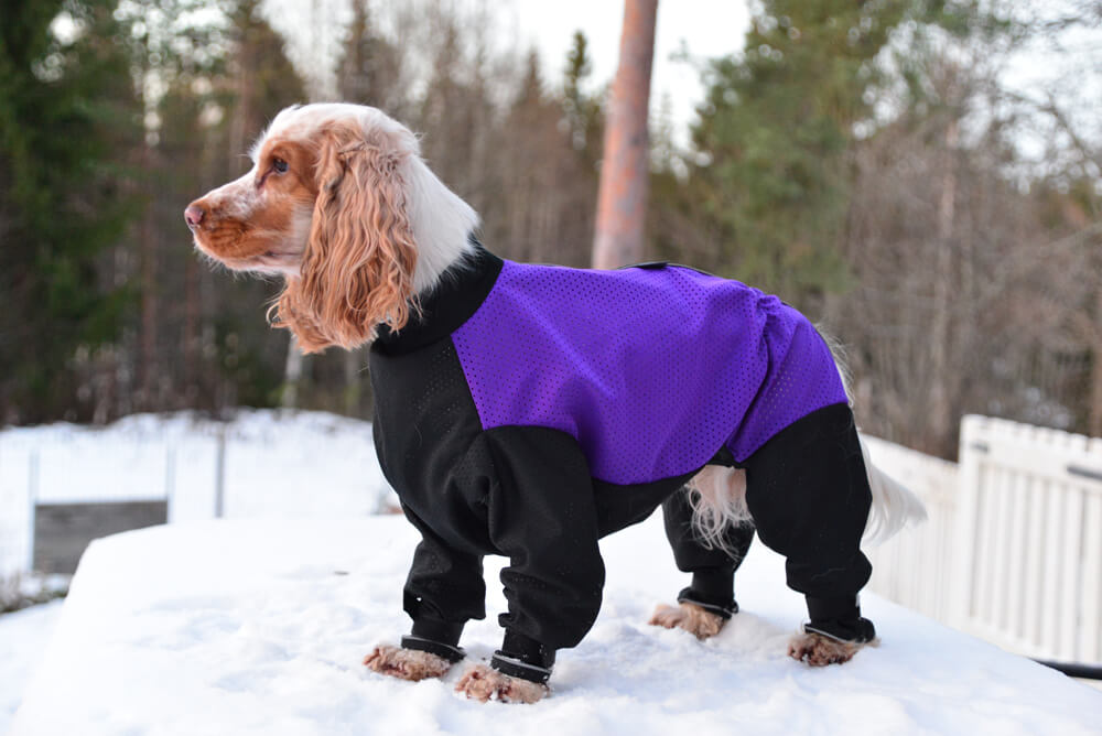 Kevyt ns. pelipaitakankaasta valmistettu haalari! Kestävästä ja hengittävästä reikäneuloksesta suunniteltu haalari vaikka ympärivuotiseen käyttöön. Metsähaalari suojaa pörröisemmänkin turkin lumen, risujen ja muiden roskien aiheuttamilta takuilta. Tehokkaat VizLite-heijastintereet selässä ja punteissa takaavat näkyvyyden joka suunalta. Lahkeissa tarrakiinnitys, joka ei päästä tassuja haalarin sisään koiran juostessa. Tämä Janutex haalari on suunniteltu ja valmistettu Suomessa, Suomalaisiin olosuhteisiin.