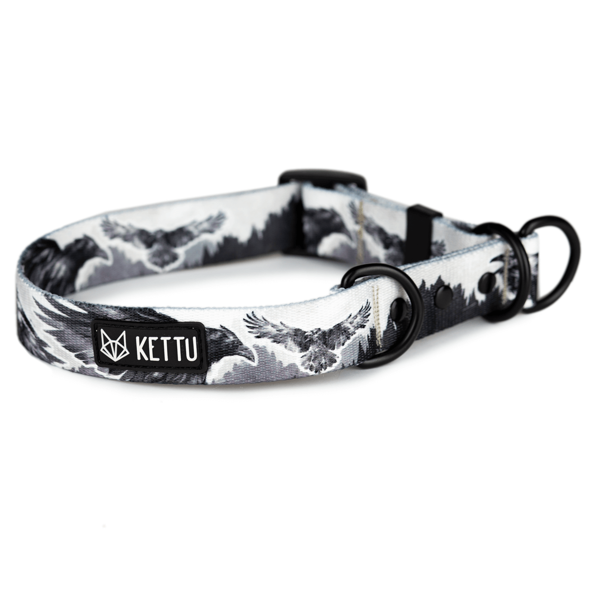Kettu säädettävä puolikiristävä nylonpanta, Korppi. Ihastuttavat ja persoonalliset Kettu koiran kaulapannat ovat tyylikäs valinta jokaiselle koiralle!
