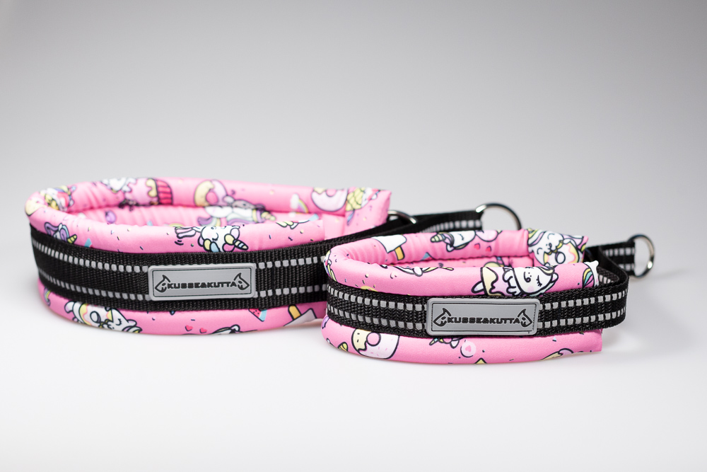 Kusse&Kutta puolikiristävä Donitsiponi koiran kaulapanta mustalla heijastinnauhalla